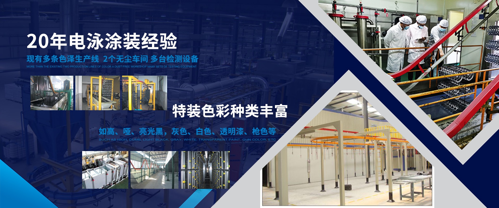 20年行业经验,电泳涂装经验丰富,特装色彩种类丰富,拥有大型的生产厂房和优良的生产设备,现有多条色泽生产线、2个无尘车间、多台检测设备等
